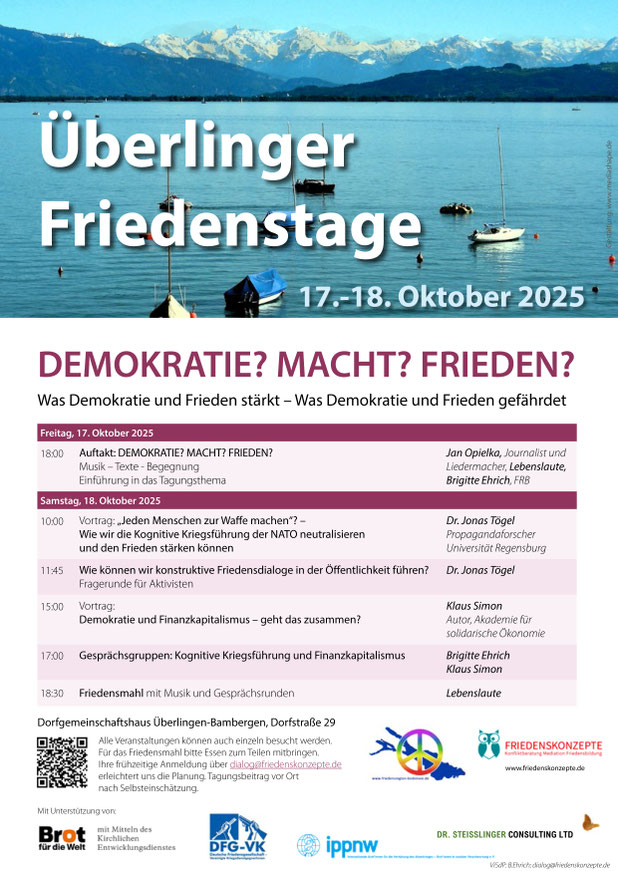 Programm: www.friedensregion-bodensee.de/ueberlinger-friedenstage/ und https://www.friedenskonzepte.de/